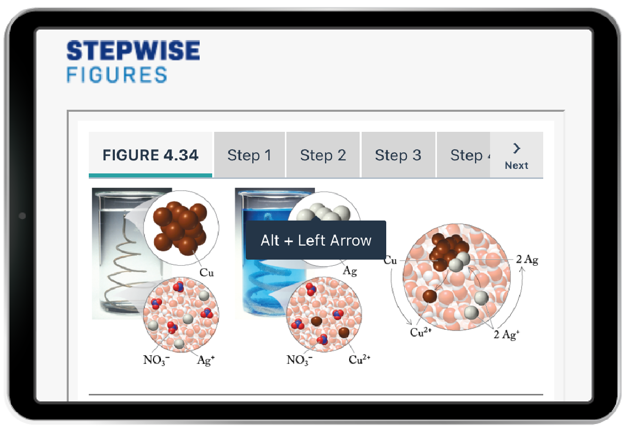 Stepwise Figures are embedded in the ebook and make the reading experience more engaging and interactive by breaking down 42 complex graphs and figures into step-by-step explanations. Static figures are explained, providing students a dive deep into how chemistry concepts are represented and visualized.