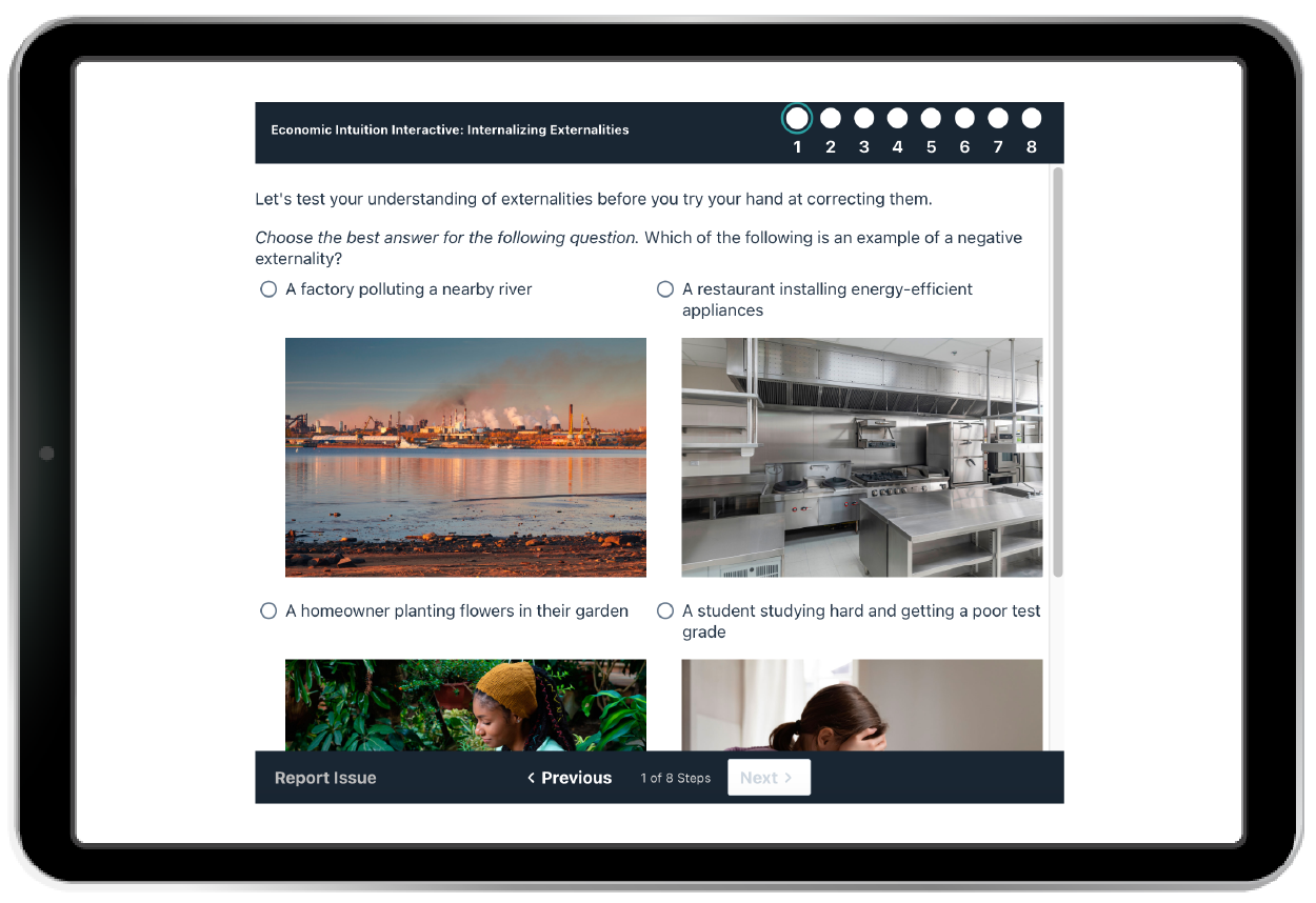 For students, Smartwork offers a variety of problem types (including graphing and algorithmic questions), book-specific hints, and extensive answer-specific feedback to help students course-correct if they’re struggling. Smartwork for Essentials of Economics includes questions tied to these books’ hallmark Practice What You Know questions, as well as Economics in the Media features and the new interactives created by Carla Nietfeld. This continuity offers a seamless experience and builds real-world problem-solving skills.