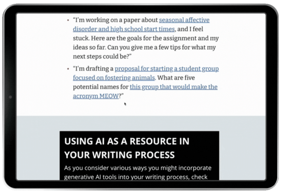 Students can learn from a collection of thirty short (two-to-three-minute) animated videos covering a range of topics: understanding academic argument, peer review, critical reading strategies, using AI as a resource in the writing process, and more.