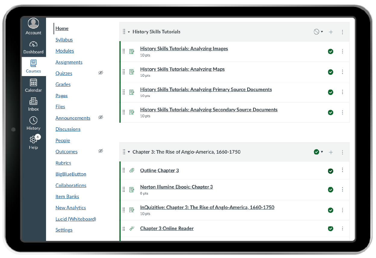 For instructors, easily add high-quality Norton digital resources to your online, hybrid, or lecture courses through integrated links. Build your course using a carefully designed learning pathway or customize your setup to best reflect your teaching needs. Graded activities can be configured to report to the LMS course gradebook. This seamless LMS integration and a dedicated Customer Success Manager team ensures that your course is set up just the way you want it.