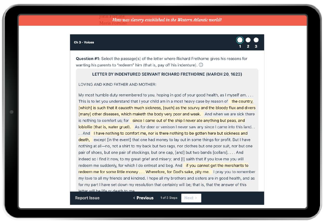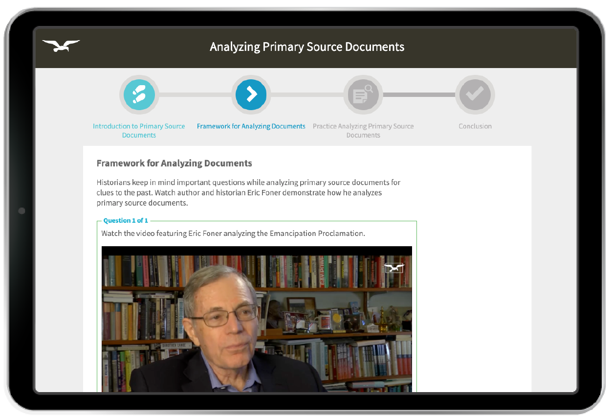 For students, the text and courseware give them the enduring skills and scaffolding they need to read and think critically, analyze evidence, and articulate their own perspective. First, our popular interactive History Skills Tutorials introduce primary source document, secondary source document, image, and map analysis. Then, in every chapter of the Norton Illumine Ebook, students practice their critical reading and analysis skills with primary source document, image, and map interactives.