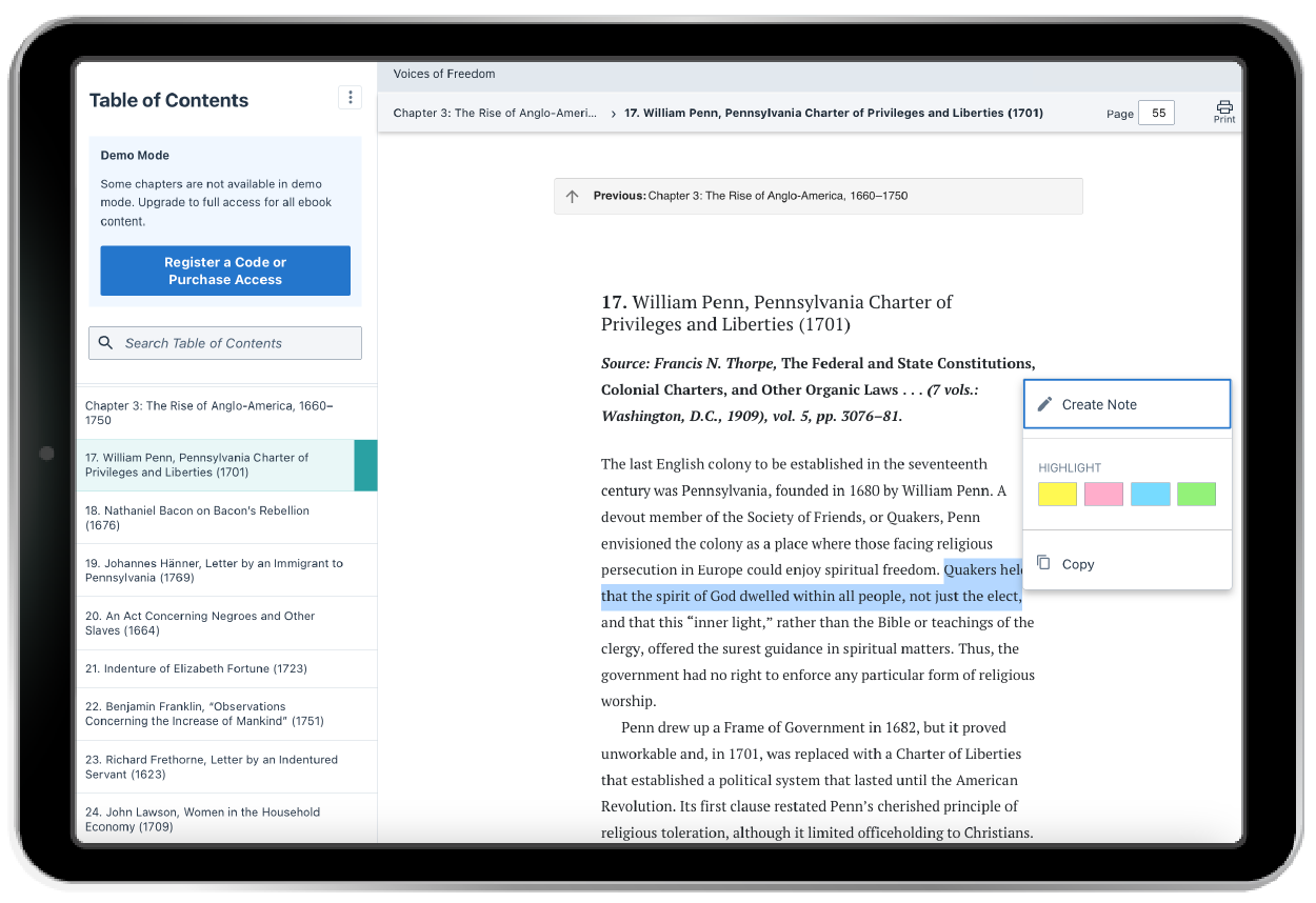 Norton Ebooks offer an enhanced, active reading experience at a fraction of the cost of a print textbook. Students can highlight, take notes, search, and read offline. You can add your own content and notes that students see as they read the text. Norton Ebooks can be viewed on all devices and are born accessible, with content and features designed from the start for all learners.