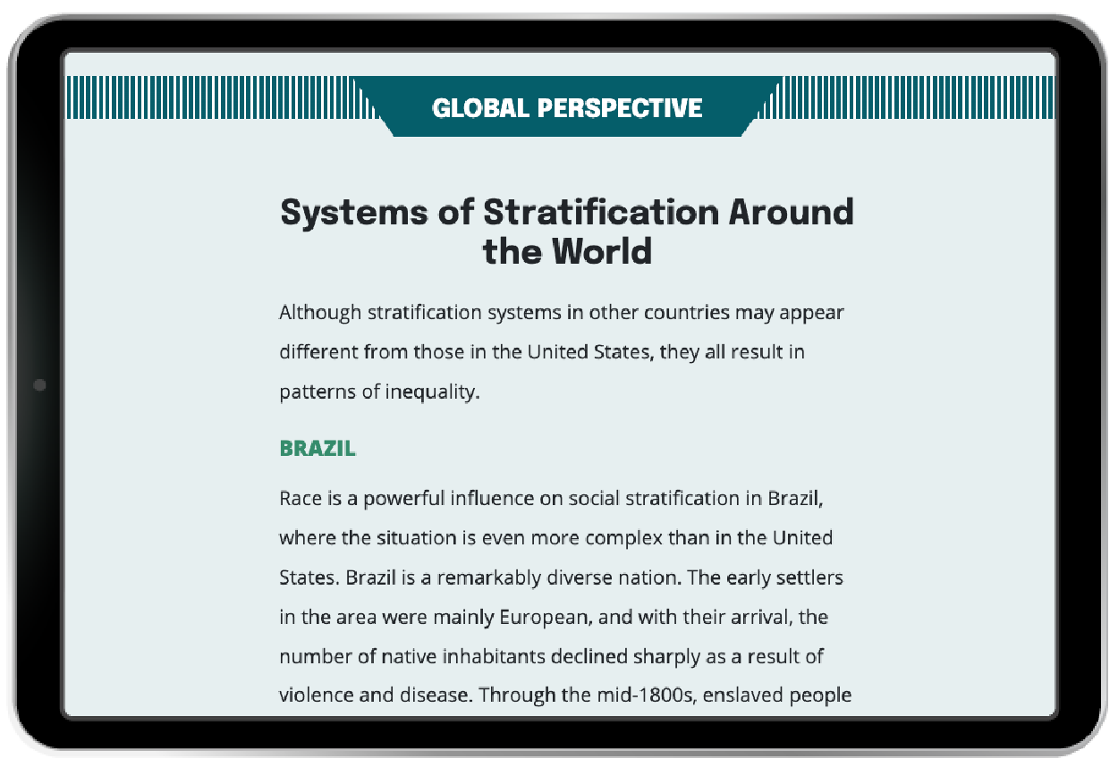 A thoroughly updated Chapter 7 on social class provides a more global picture of inequality, starting with a new opener on the glittery metropolis of Dubai.