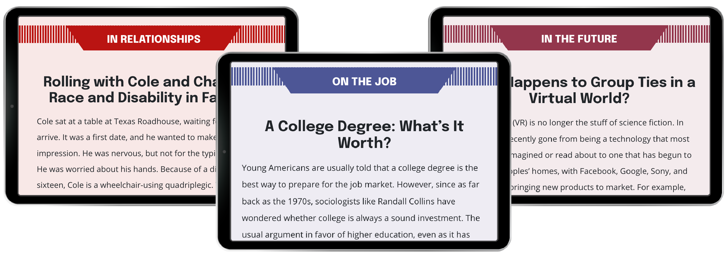 From substantive new discussions of generative AI to a story about the inter-abled and interracial couple behind the hugely popular YouTube channel “Roll with Cole and Charisma,” The Real World shows students the relevance of sociology to their relationships, jobs, and the future of society.