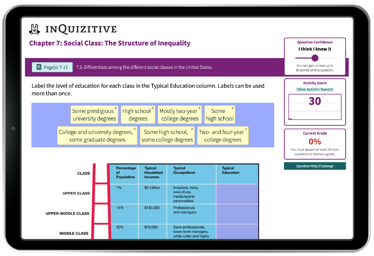 For students, InQuizitive is Norton’s easy-to-use adaptive learning tool that personalizes their learning experience, helping them master key sociological concepts and theories.